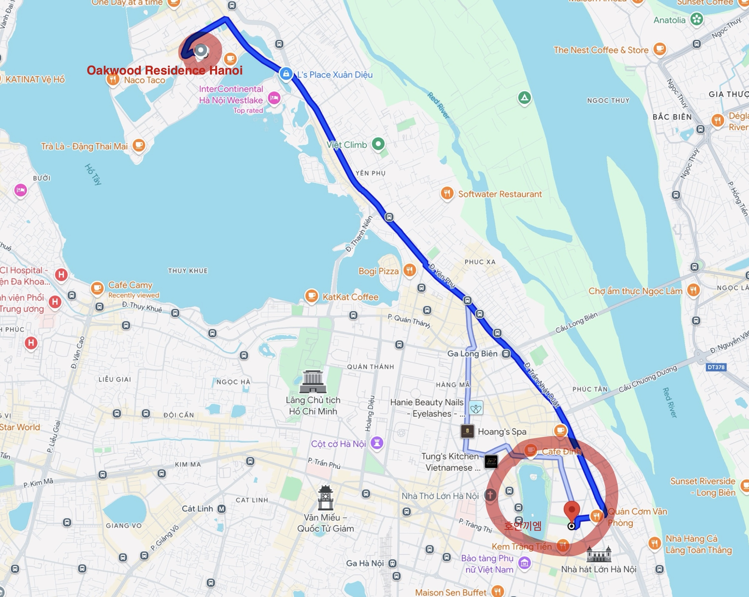 하노이에서 저희가 묵었던 숙소를 소개합니다. 서호 쪽에 위치한 Oakwood Residence Hanoi입니다. 하노이 공항에서 25분 거리 다운타운 호안끼엠에서 택시로 15분 정도 걸리는 위치로 다소 조용한 분위기를 찾으시는 분들이나 가족단위 여행객에게 여기가 최적입니다.